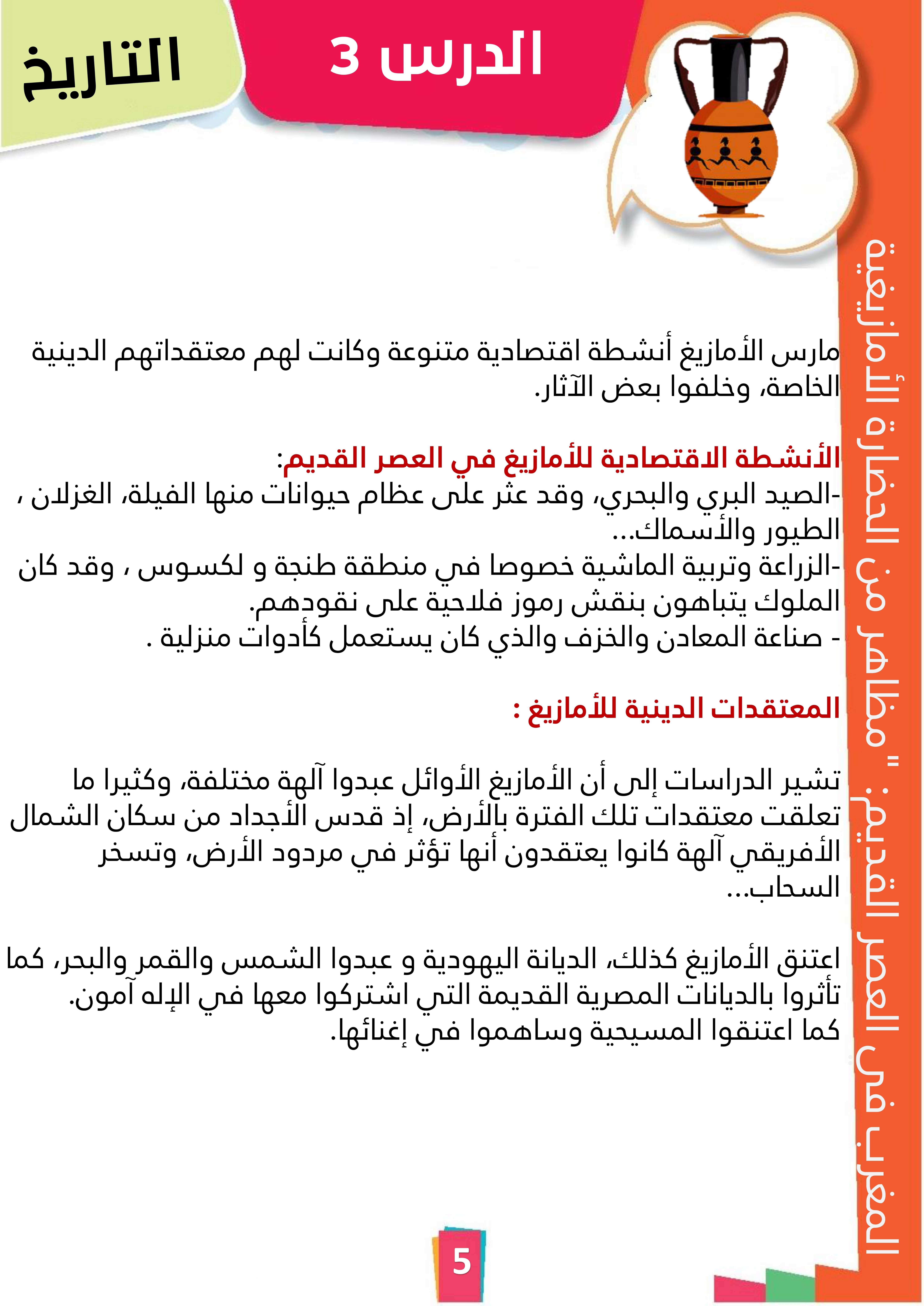 ملخص درس الاجتماعيات مكون التاريخ - درس المغرب في العصر القديم : مظاهر من الحضارة الأمازيغية للسنة السادسة من التعليم الابتدائي.